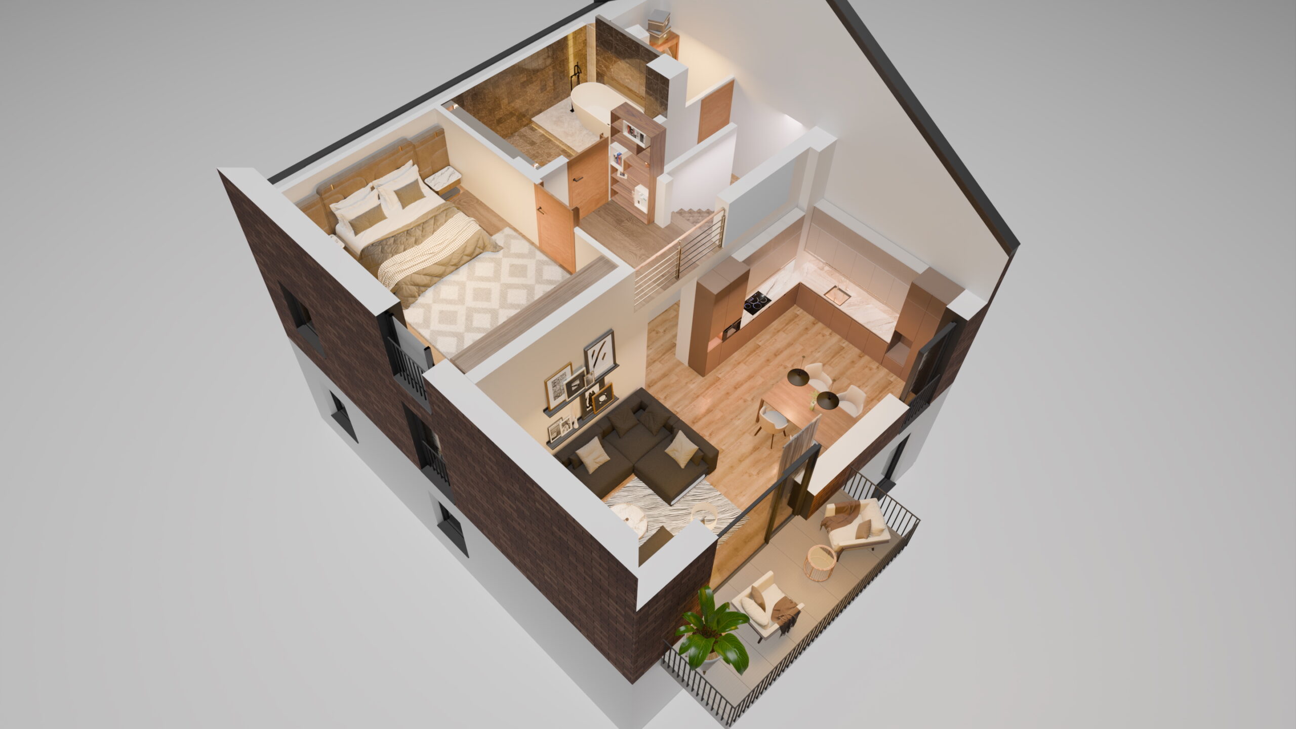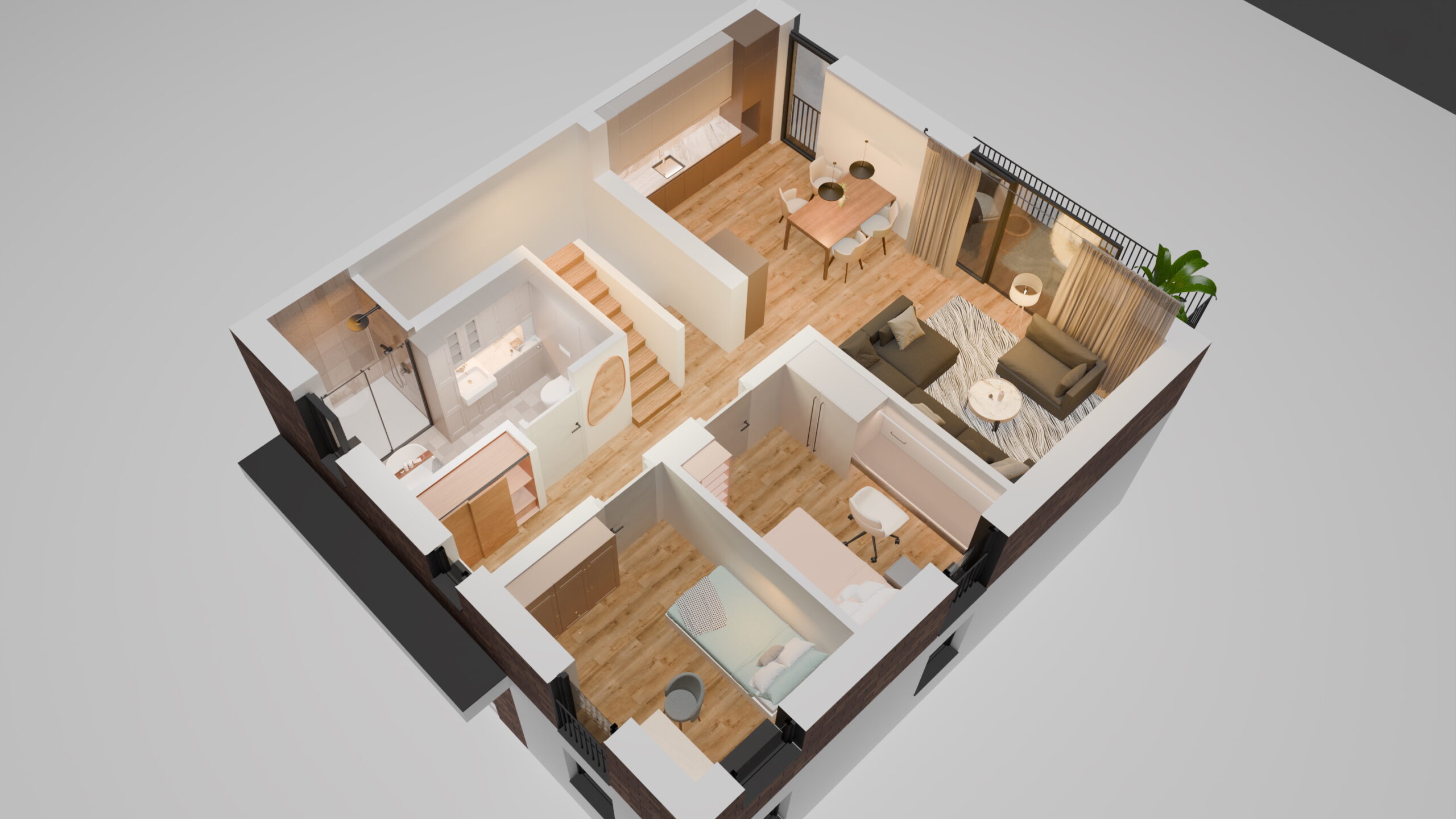 - funkcjonalny układ o powierzchni 65m2